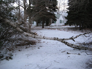 So I recently found further proof that my parents think I'm Superman. Our realtor called us (my parents are selling our cottage) and informed us that a tree had fallen in our driveway and it was blocking part of it. My mom tells her not to worry, that I am home and I will move it. I had my doubts. I heard tree, and assumed it weighed more than me. I was right. I got there to see a large birch tree that I definitely could not pick up. I moved a lot of the branches but there was still some work left to do.